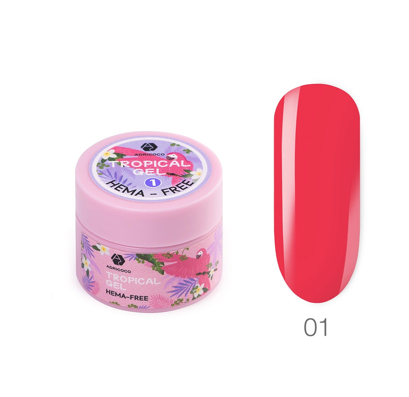 Цветной гель для наращивания Tropical Gel, жесткий, HEMA-Free, №01 - шаловливый арбуз, ADRICOCO, 15 мл