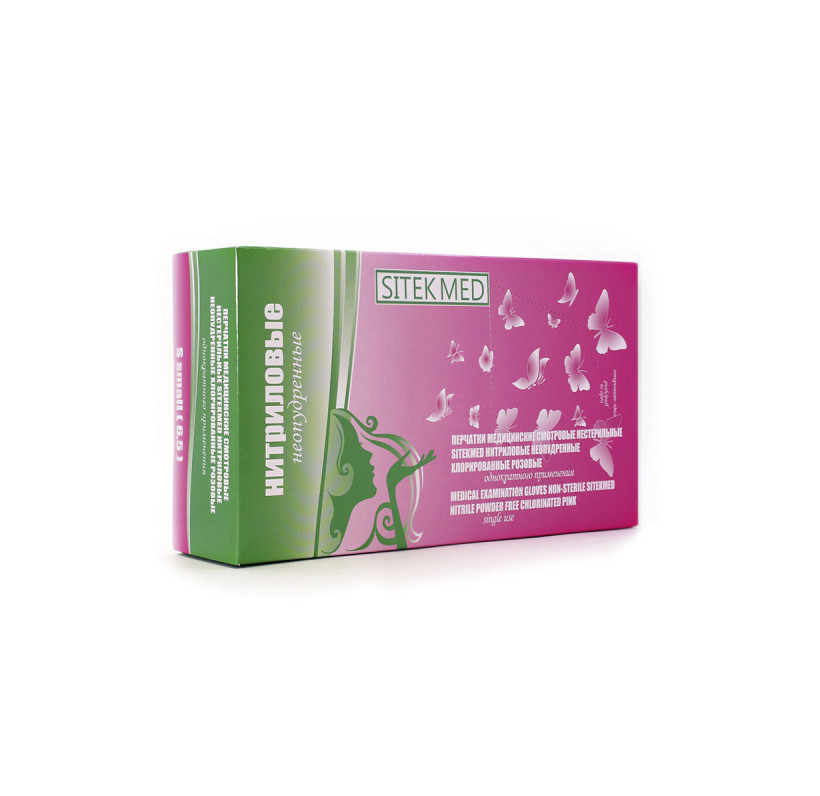 Перчатки смотровый н/с нитриловые (розовые) SitekMed XS 50 пар 3,5 гр