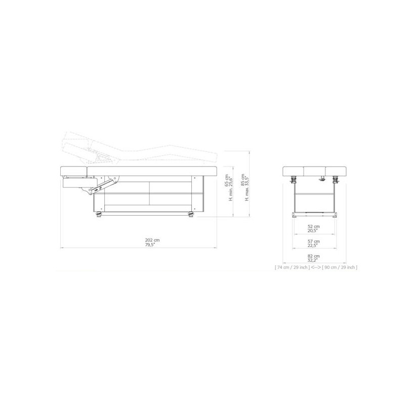 Многофункциональная кушетка FLORENCE для массажа и SPA процедур для лица и тела, способна обеспечить максимальный комфорт, а также совмещает в себе практичность и оптимизацию рабочего пространства. Кушетка оснащена тремя электромоторами, с помощью которых регулируются высота, наклон спинки и сидения (ножной части), регулировки осуществляются за счет ножного пульта управления. Каркас массажной кушетки выполнен в виде шкафа с раздвижными панелями, для хранения аксессуаров, инструментов, косметических продуктов.