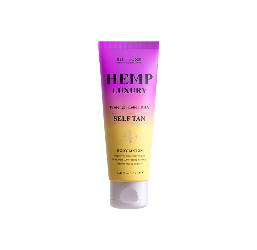 Hemp Luxury Self Tan - идеальное средство для ежедневного ухода за Вашим бронзовым загаром. Лёгкая Формула этого питательного лосьона с комплексом пролонгированного действия в сочетании с DHA создана для ухода после загара в солярии, на солнце или в любое время, когда вашей коже требуется прохладный глоток свежести. Уникальный комплекс Tan Prolonger – помогает сохранить кожу увлажненной и здоровой, а также гарантирует постепенное, равномерное потемнение, придавая коже мягкий и красивый оттенок загара. - Formula DHA Tan Prolonger - смесь экстракта скорлупы черного ореха и интенсивно бронзирующий комплекс на базе DHA в сочетании с Эритрулозой, позволит не только закрепить уже полученный загар, но и сформирует более глубокий и насыщенной оттенок. Улучшает собственный тон и цвет кожи, уменьшая покраснения и выравнивая цвет. - 4-х кратный комплекс тирозина - способствует ускорению выработки собственного меланина, помогает добиться естественного насыщенного оттенка загара. - Комплекс тройного увлажнения – сочетание трех уникальных масел (дерева ши, жожоба и авокадо) - обеспечивает превосходное увлажнение на 24 часа. Ухаживают за Вашей кожей, придавая ей потрясающую мягкость. - Green Tea Extract - активно питает кожу, предотвращая преждевременное фотостарение, а также разглаживает микрорельеф. - Сollagen Boosting— борется со свободными радикалами и стимулирует выработку коллагена. Помогает повысить эластичность кожи и уменьшить появление мелких морщин. - Масло моркови - мощный антиоксидант с высоким уровнем бета-каротина и витаминов А и Е, обеспечивает антивозрастной эффект, способствует закреплению загара. - Cool Tan - комплекс натуральных охлаждающих экстрактов, увлажняет, смягчает кожу и дарит ей приятное ощущение прохлады после загара. - Natural vegan skin care – бессульфатные компоненты, отсутствие парабенов и глютенов. Отличное средство и может работать так же как увлажняющий крем после загара и автозагар. Аромат: Фруктовая свежесть