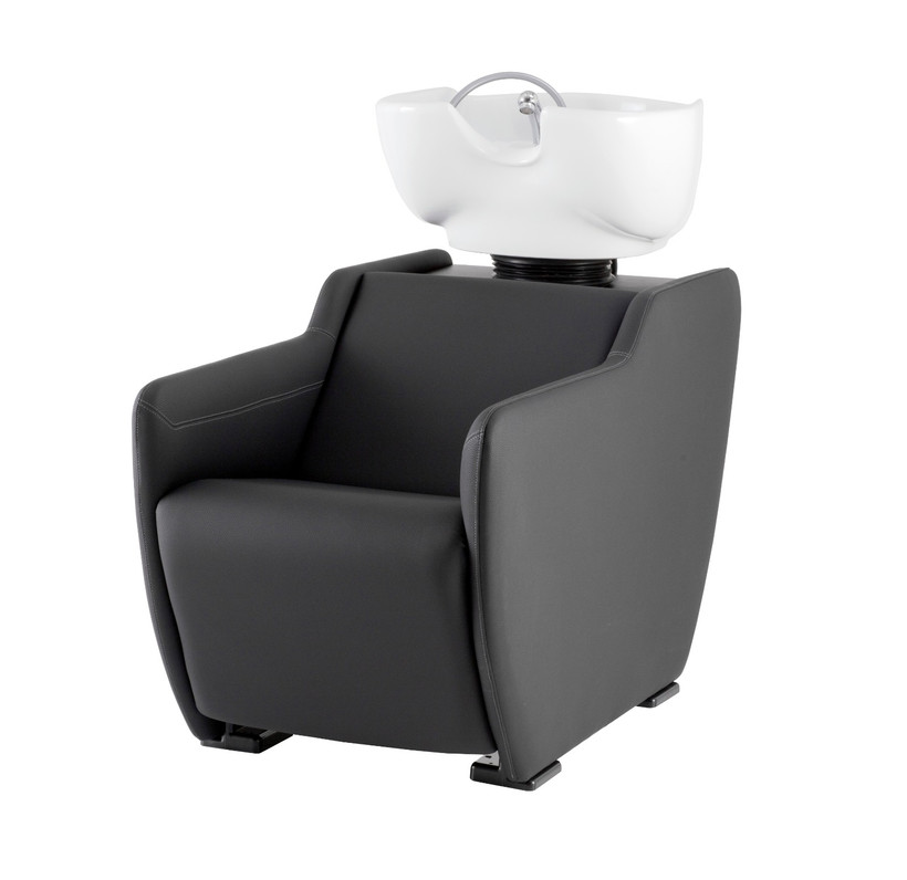 Мойка парикмахерская. Каркас, сиденье и спинка выполнены из высококачественного вспененного полиуретана с вставками из дерева и металла. Кресло оснащено мягкими и комфортными подлокотниками. Мойка комплектуется глубокой керамической раковиной с регулировкой угла наклона и комплектом смесителя. Обивка - искусственная кожа высшего качества.