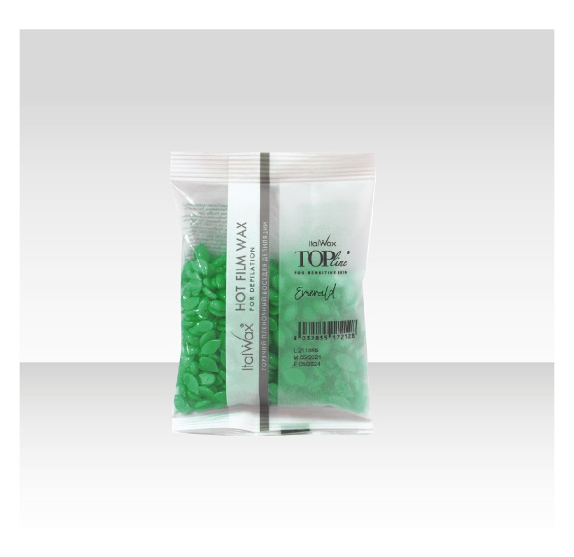 Воск горячий (пленочный) ITALWAX Top Line Emerald (Изумруд) гранулы 100гр №30 - это высококачественный продукт для восковой эпиляции, который обеспечивает эффективное удаление волос и комфорт во время процедуры.