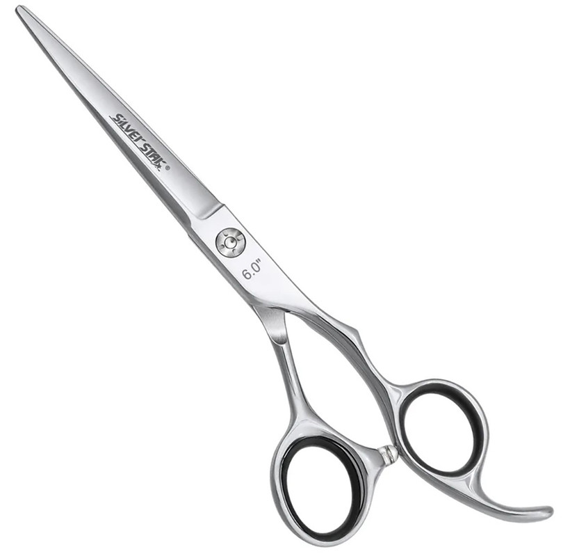 Ножницы парикмахерские для стрижки волос прямые профессиональные премиальные, PN 130-6 PREMIUM, 6''дюймов, Silver Star оригинал. Эргономичная форма, заднее лезвие в виде японского меча для повышенной режущей способности. Премиальная нержавеющая сталь японской модификации SUS440C, 59-61HRC, конвекционная заточка лезвий для скользящего и точного среза, шарикоподшипниковая система соединения для гладкости хода. В комплектации коробка, масло, салфетка, ключ. Длина ножниц 155мм, полотен 67мм.