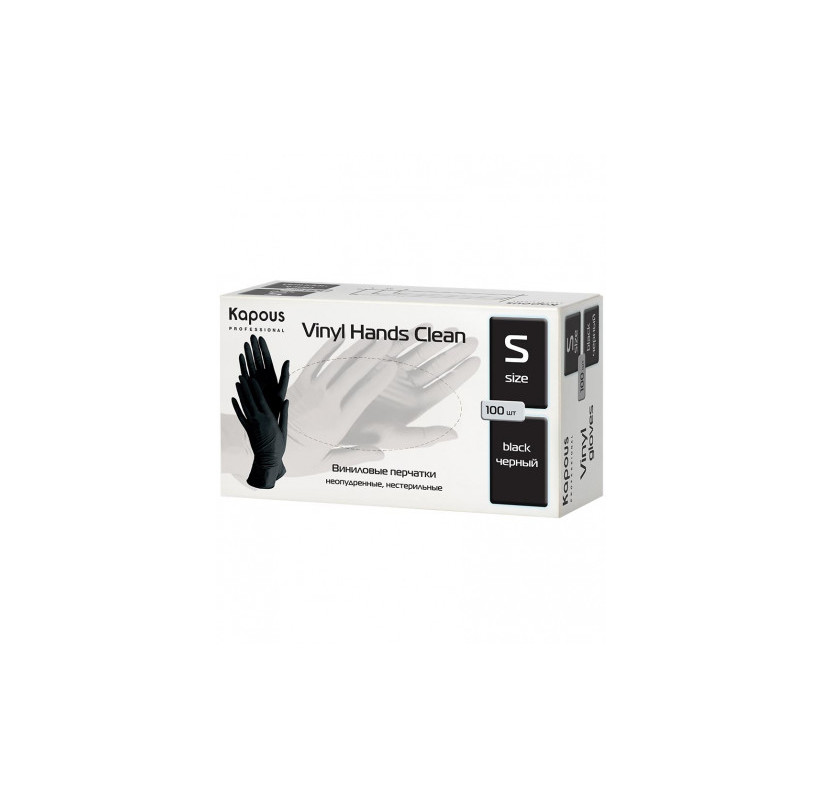 Виниловые перчатки неопудренные, нестерильные "Vinyl Hands Clean" Kapous, черные, 100 шт., S