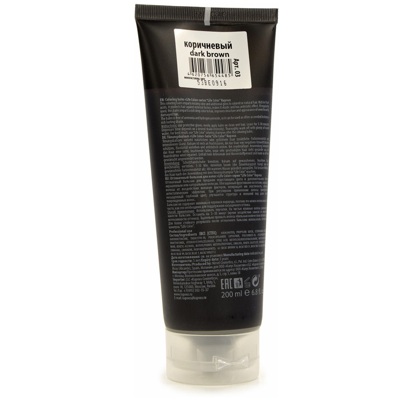 Kapous "Life Color" коричневый оттеночный бальзам для волос – это профессиональное средство, которое обеспечивает волосам защиту, уход и тонирование, а также стойкость цвета.