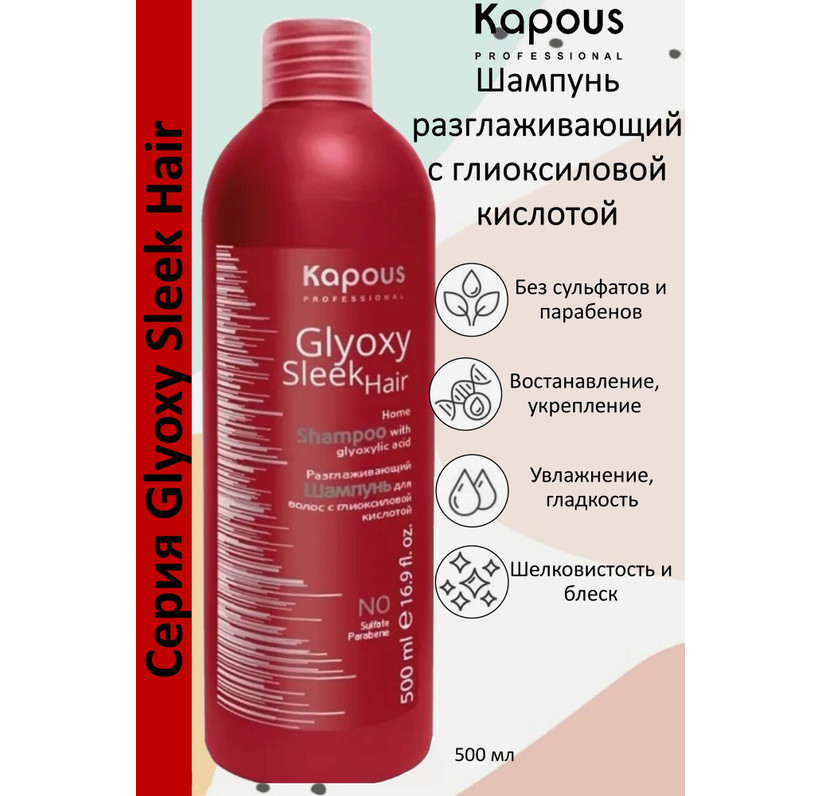 Шампунь разглаживающий с глиоксиловой кислотой Kapous "GlyoxySleek Hair", 500 мл
