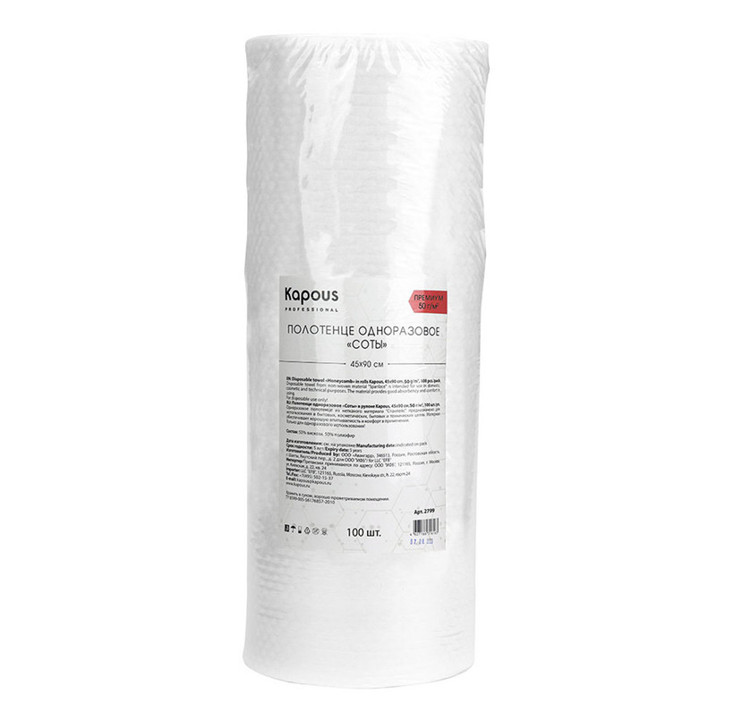 Полотенце одноразовое соты в рулоне Kapous, 45*90 cм, 50 г/м2, 100 шт./рулон
