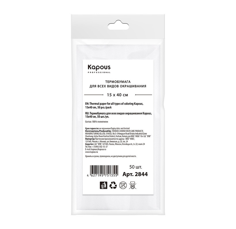 Термобумага для всех видов окрашивания Kapous, 15х40 см, 50 шт./уп.