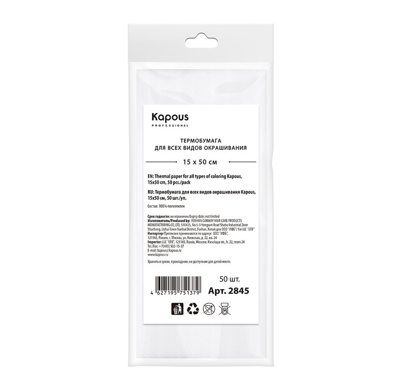 Термобумага для всех видов окрашивания Kapous, 15х50 см, 50 шт./уп.