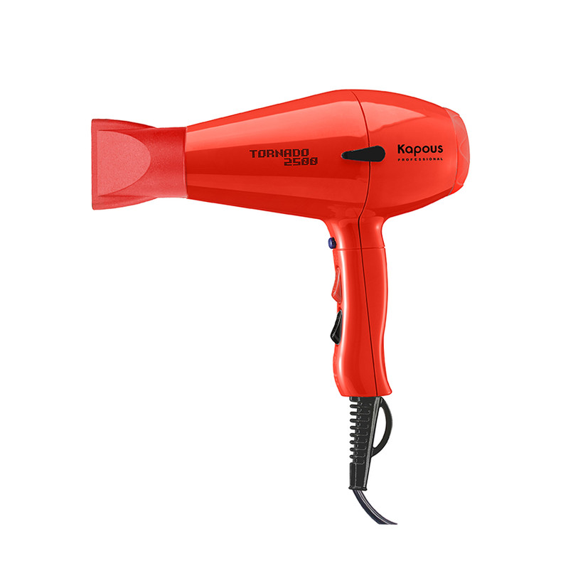 Фен Kapous "Tornado 2500" выполнен в ярком красном цвете, что делает его стильным и заметным аксессуаром.