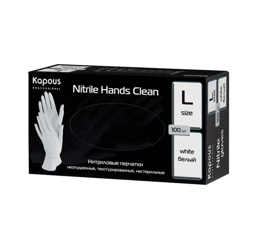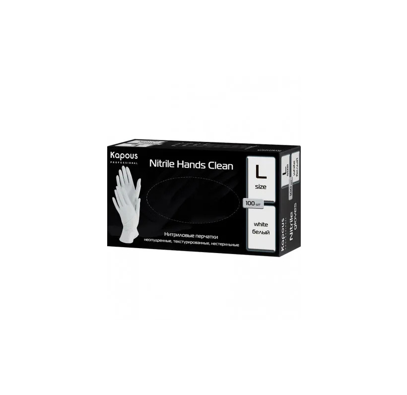 Нитриловые перчатки неопудренные, текстурированные, нестерильные «Nitrile Hands Clean» Kapous, белые L
