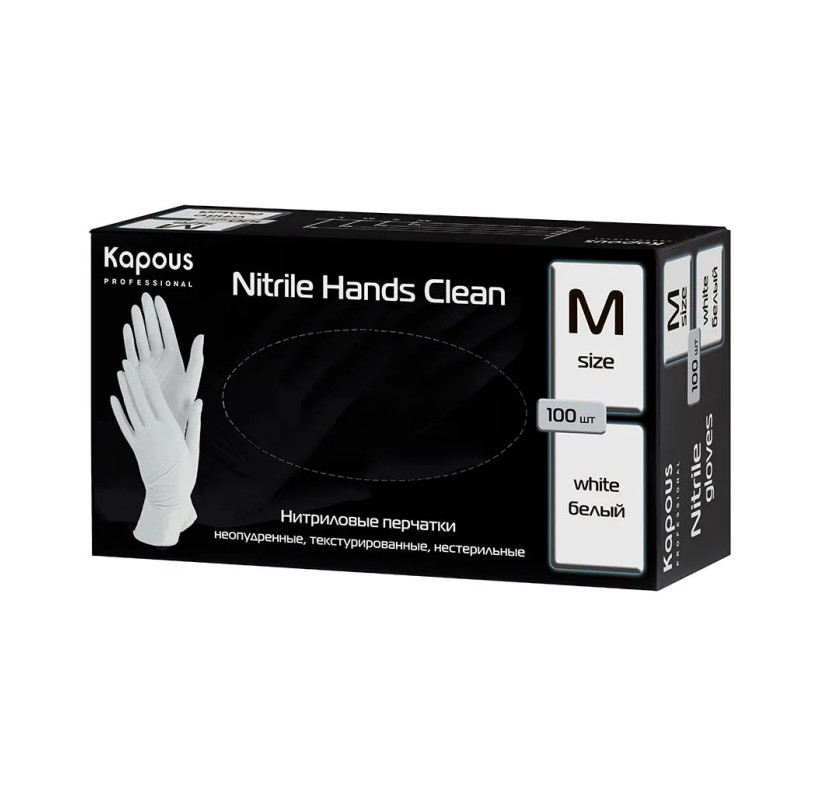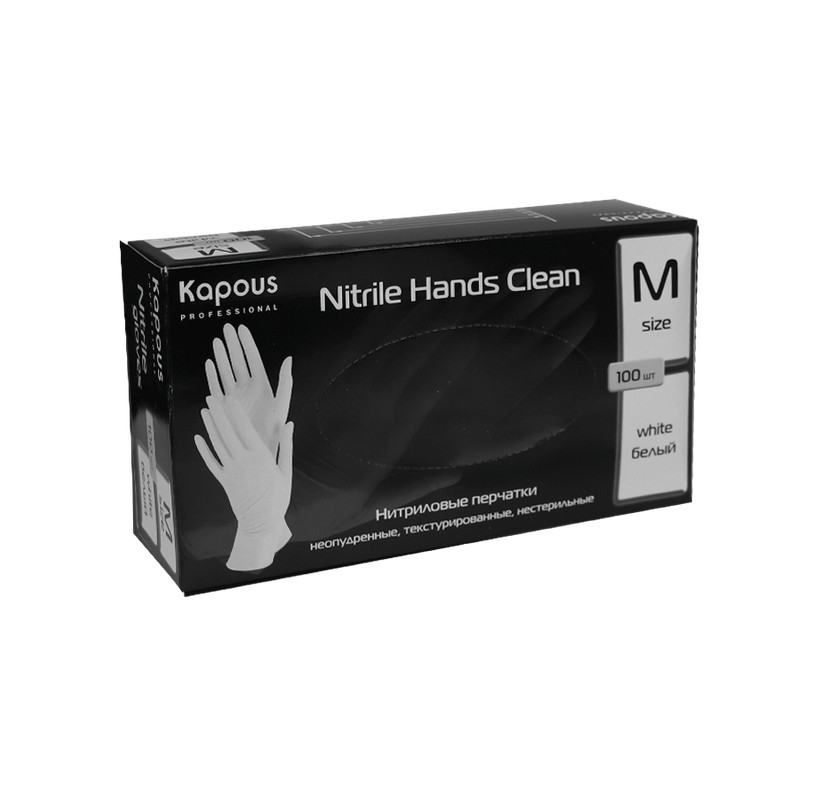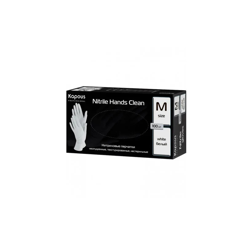 Нитриловые перчатки неопудренные, текстурированные, нестерильные «Nitrile Hands Clean» Kapous, белые M