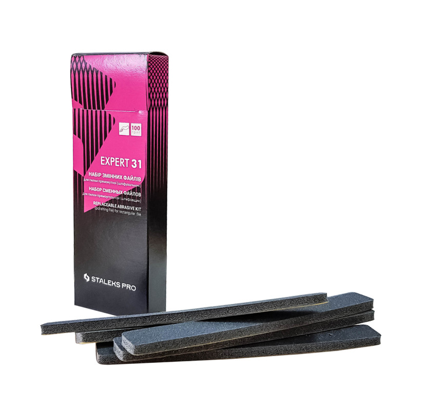 Набор сменных крупнозернистых файлов для пилки прямоугольной (шлифовщик) EXPERT 31 100 грит (10 шт) DFE-31-100 эффективно выравнивает и шлифует жесткие искусственные ногти. Для обработки натуральных ногтей подходят наклейки жесткостью от 180 грит и выше.