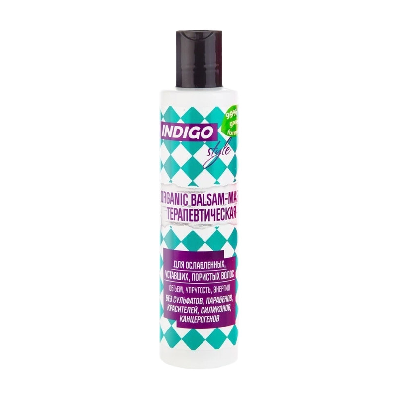 Интенсивное мгновенное восстановление, придание блеска, питания, увлажнение и укрепление волос – все это возможно с органической бальзам-маской терапевтической Indigo Style.
